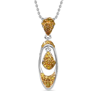 Yellow Diamond Pendant with Chain (Size 20) in Rhodium Overlay Sterling Silver 0.25 Ct.