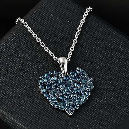 Blue Diamond Pendant with Chain (Size - 20) in Rhodium Overlay Sterling Silver 0.50 Ct.