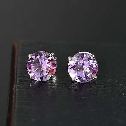 D'joy Rose De France Amethyst Solitaire Stud Push Post Earring