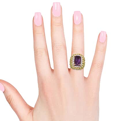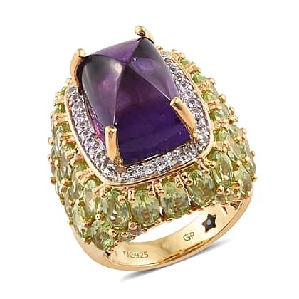 GP Zambian Amethyst (Cush 14x10 mm), Hebei Peridot and Multi Gemstone Ring in 14K Gold Overlay Sterling Silver 17.75 Ct, Silver Wt 8.31 Gms