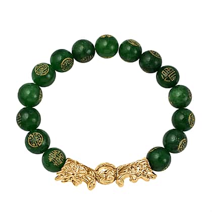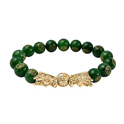 Green Jade Beads Feng Shui Dragon Adjustable Bracelet (9-10mm) in Yellow Gold Tone 105.00 Ct