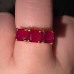 Lovely ruby ring. I don’t usually go for rubies but purchased this ring as it’s my birthstone. Very happy with the fit and design. Excellent quality. Comfortable to wear. It’s nice and bold without being too big. Sits proud on the finger but I haven’t had any issues with catching it.