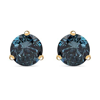 Luxuriant Diamond Lab Grown Blue Diamond Earring With Push Back in Sterling Silver