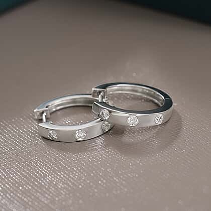 LUXURIANT Lab Grown Diamond Hoop Earrings in Rhodium Overlay Sterling Silver (SI G/H)