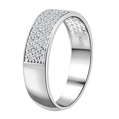 This half-eternity band ring showcases a dazzling arrangement of 78 faceted round moissanites, each radiating extraordinary brilliance. Encased in a lustrous rhodium overlay, the sterling silver design promises both style and durability. A symbol of enduring love and commitment, this piece serves as a versatile treasure for life’s most precious moments.