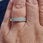 Yes, you can stack a moissanite cluster ring with any other ring like a band ring that compliments your personality and look. Ensures the metal of the ring matches with the moissanite cluster ring’s metal and also considers not to use different metals while stacking.