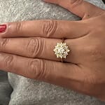 The moissanite cluster ring features multiple stones that create a larger diamond effect. In contrast, a halo ring features a single stone at the centre, surrounded by small stones, creating a vintage inspired design.