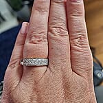 - Cluster: Moissanite cluster band features multiple small gemstones together, making it a dazzling and sparkling fashion statement that captures attention with every movement.