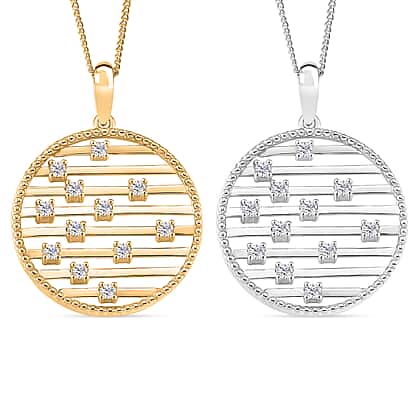 Set of 2 - Moissanite Pendant with Chain (Size 18) in Rhodium Overlay & Yellow Gold Plated Sterling Silver
