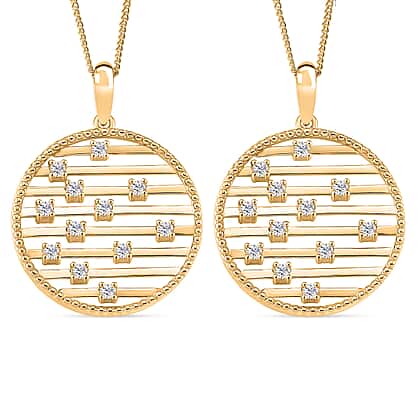 Set of 2 - Moissanite Pendant with Chain (Size 18) in Yellow Gold Plated Sterling Silver