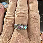 If you are someone looking for far from ordinary rings, then go for moissanite trilogy ring adorned with coloured gemstones. Select from tanzanite, emerald, pink, to dichroic luminous moissanite to make an impact.