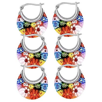 Vibrant, playful, and full of character, the set of 3 multi colour Murano-style glass basket earrings brings Italian-inspired artistry to your jewellery box. Each earring showcases intricate floral detailing in bold shades of red, blue, yellow, and green, reminiscent of classic Murano glasswork. The basket-style design gives them a unique twist, adding movement and charm to every outfit. Made with durable stainless steel, these earrings are hypoallergenic, tarnish-resistant, and comfortable for sensitive skin. This trio offers versatility and value, letting you enjoy colourful statement pieces that radiate individuality, creativity, and timeless style with ease.