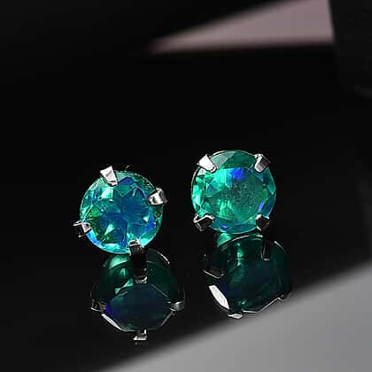 Peacock Triplet Quartz Earring with Push Back in Sterling Silver