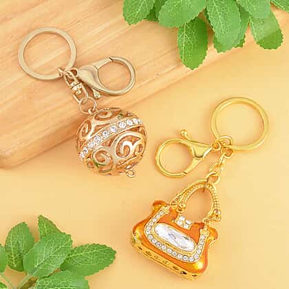 Set of 2 - White Austrian Crystal Playful Keychain in Yellow Gold Tone