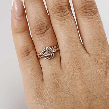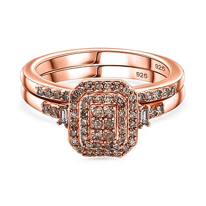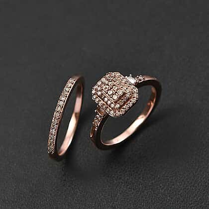 Set of 2 - Champagne Diamond Stackable Ring in 18K Vermeil Rose Gold Plated Sterling 0.51 Ct.