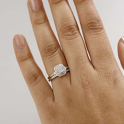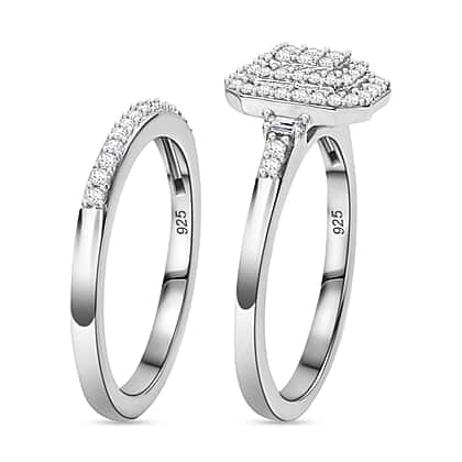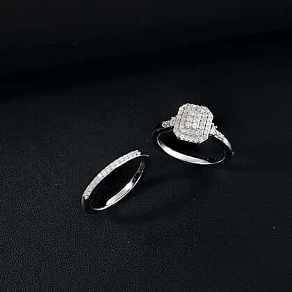 Set of 2 Diamond Stackable Ring in Rhodium Overlay Sterling Silver