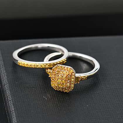 Set of 2 Diamond Stackable Ring in Rhodium Overlay Sterling Silver