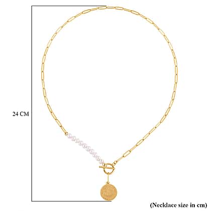 White Fresh Water Pearl Paperclip Circle Necklace (Size - 22) With T-Bar Clasp