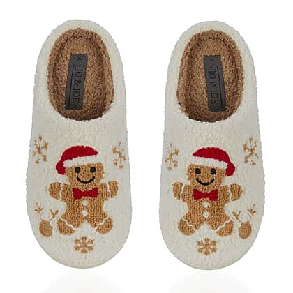 Jo - Joe Design Christmas Gingerbread Man Fluffy Mule (Size 6) - Cream