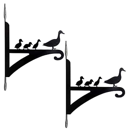 Set of 2 Duck Garden Hanging Basket Bracket - Black