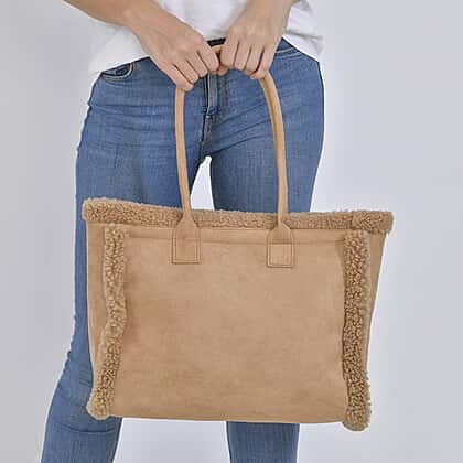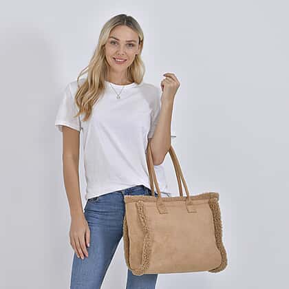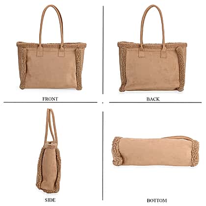 Winter Fashion Closeout - Faux Fur Plush LARGE Tote Bag - Brown