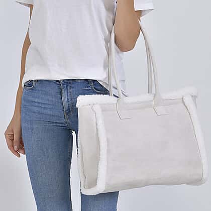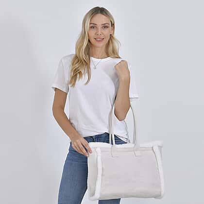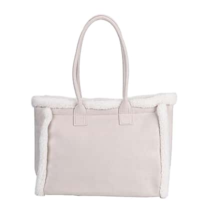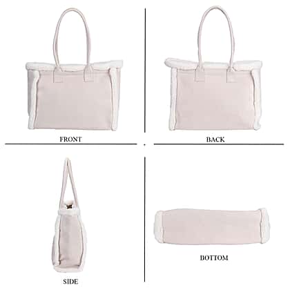 Winter Fashion Closeout - Faux Fur Plush Large Tote Bag - Beige