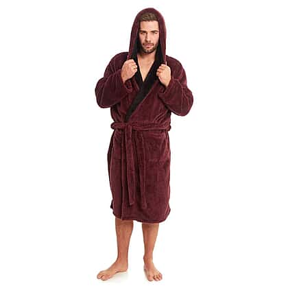 Premium Luxury Toweling Teddy Fleece Mens Robe - Maroon