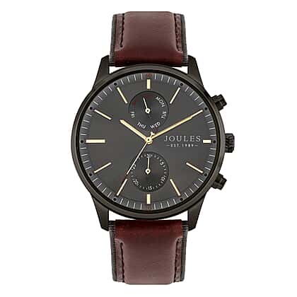 Joules Gents Watch with Brushed Gun Sunray Dial and Brown Strap