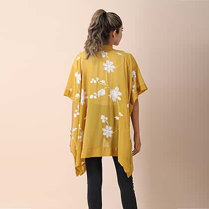 JOVIE Chiffon Embroidered Detailing Kimono -Yellow