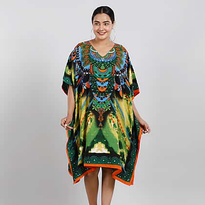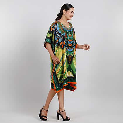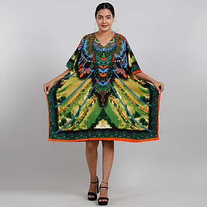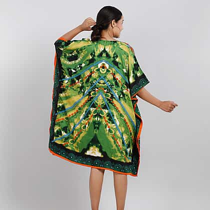 JOVIE Fantasy Printed Short Kaftan (Size 95x80 Cm) - Green & Multi