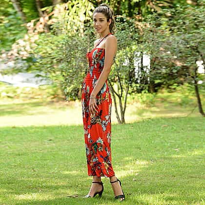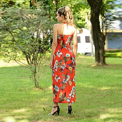 JOVIE Floral Pattern Smocked Halter Dress (Size 115x27 Cm - Up To Size 18) - Red & Multi
