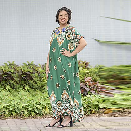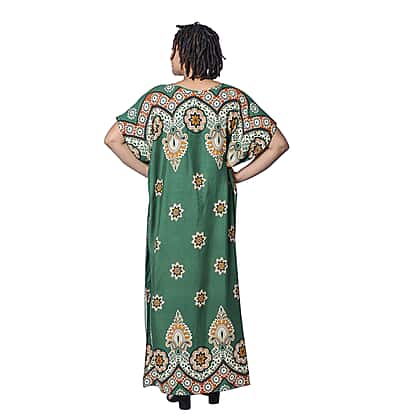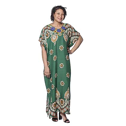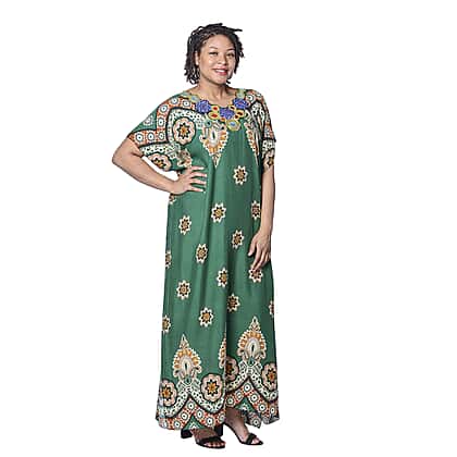 JOVIE Green Bohemian Style Printed Long Dress with Embroidered Neckline Up to Size 20 (138x78cm) - CB 54in