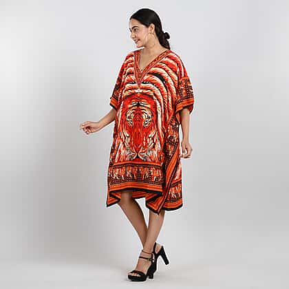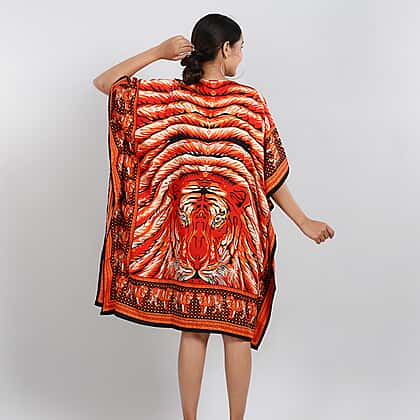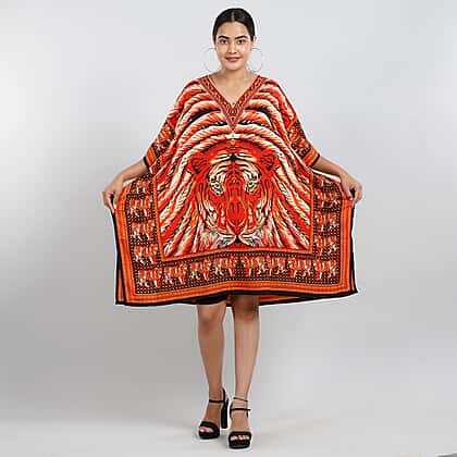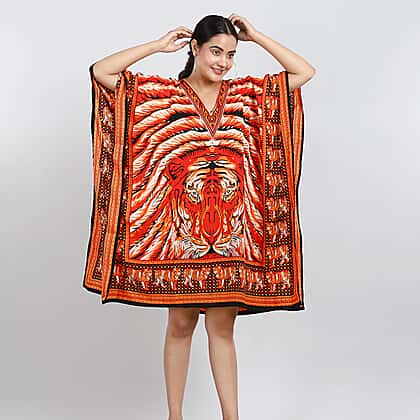 JOVIE Tropic Tiger Printed Short Kaftan (Size 95x80 Cm) - Orange & Multi