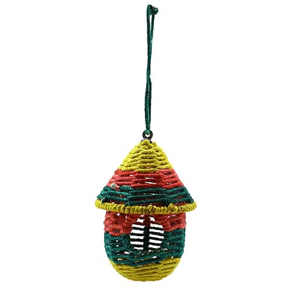 Jute Rope Weaved Hut Shape Steel Bird House - Multi