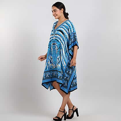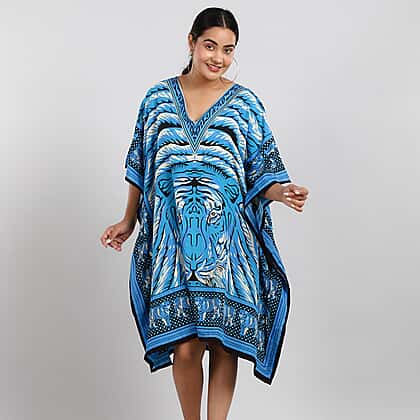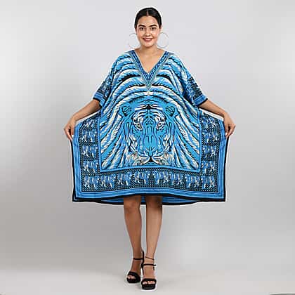 JOVIE Tropic Tiger Printed Short Kaftan - Blue & Multi