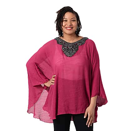 Swing Top with Embroidery Kaftan (Size 130x75cm)- Rose