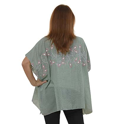 Tamsy Floral Embroidery Kaftan (One Size) - Cyan