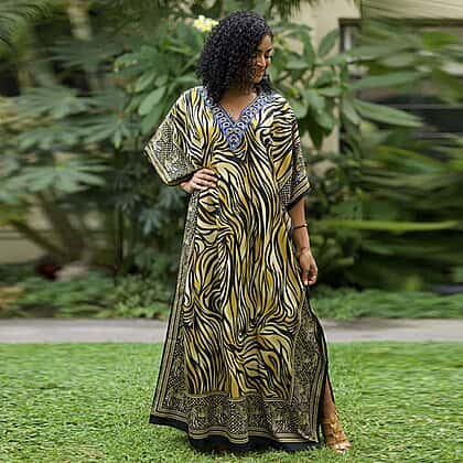 Winlar Animal Print Multi Colour Long Kaftan (One Size)