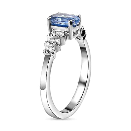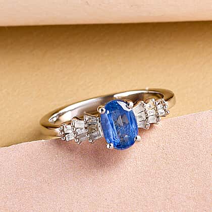 Kashmir Kyanite and Diamond Ring in Platinum Overlay Sterling Silver 1.20 Ct.