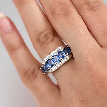 Kashmir Kyanite & White Zircon Ring in Rhodium Overlay Sterling Silver 3.73 Ct.