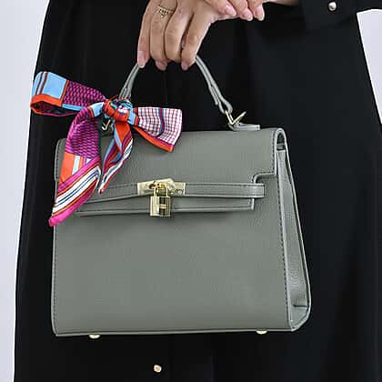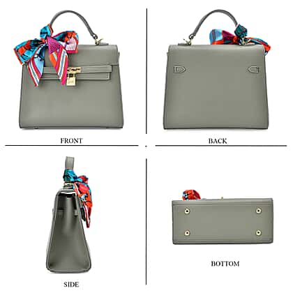 Kelly-Style Shoulder Bag with Scarf Accent & Adjustable Strap - Green