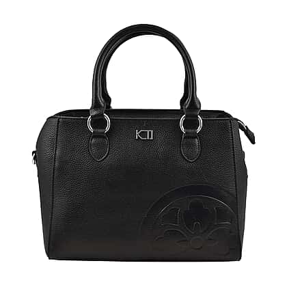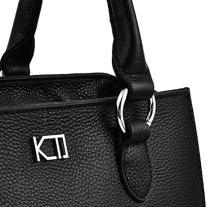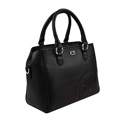 KTD by Kenzo Takada Leather Classic Top Handle Tote Bag with Crossbody Strap - Black