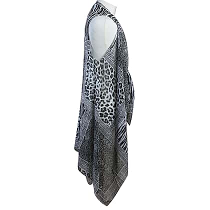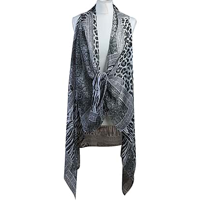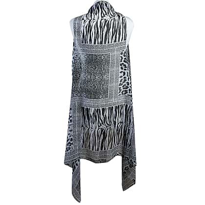 Animal Print Sleeveless Kimono in Black and White (Size 43x90cm)