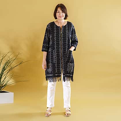 Bali Collection - 100% Cotton Casual Jacket (One Size) - Black and White