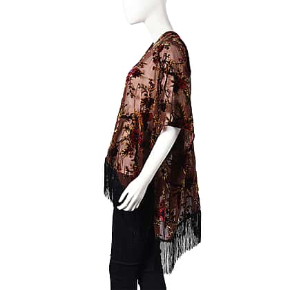 - This fancy kimono is illustrated by vibrant burnout flowers pattern