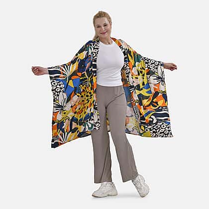 Closeout Deal Exclusive Multi Pattern Printed Kimono (One Size) - Black