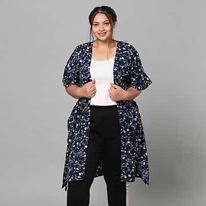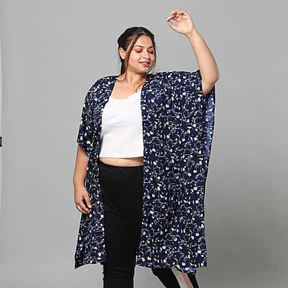 Floral Bohemian Look Long Kimono in Navy (Size up to 20)