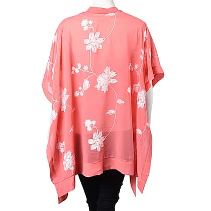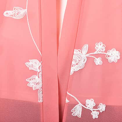 Flower Embroidery Pattern Kimono (Size 95x80 Cm) - Pink