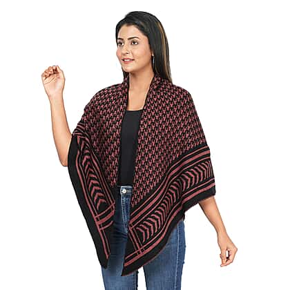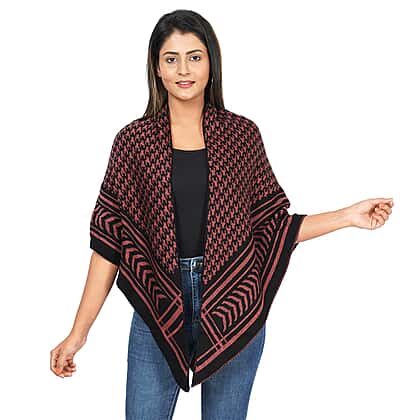 Jacquard Knit Kimono (L: 100m, W: 100cm) - Black and Sandstone Colour