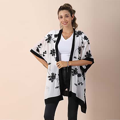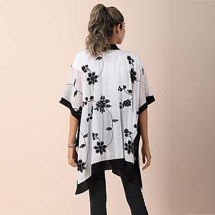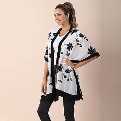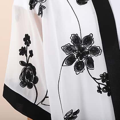 JOVIE Chiffon Floral Embroidery kimono - White and Black